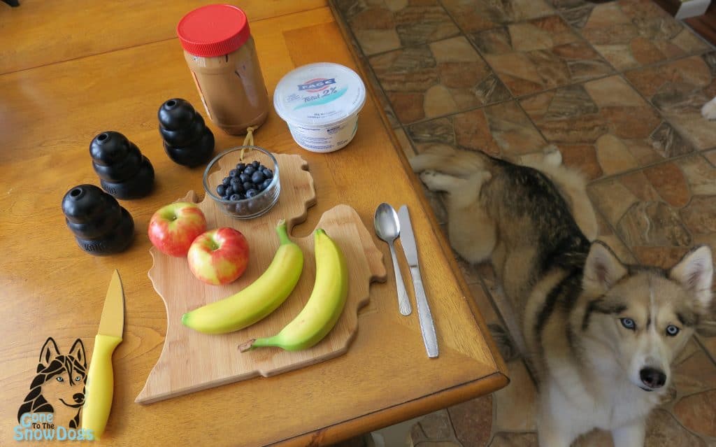 Today we are going to have some fun making DIY Fruit Salad Kong filling treats! Our dogs LOVE their Kongs, and it’s great to be able to change up the things we will them with. Peanut Butter is a great, simple thing to put in a Kong, but I think after a while, the dogs get bored with it. So today they are going to try Fruit Salad Kongs!