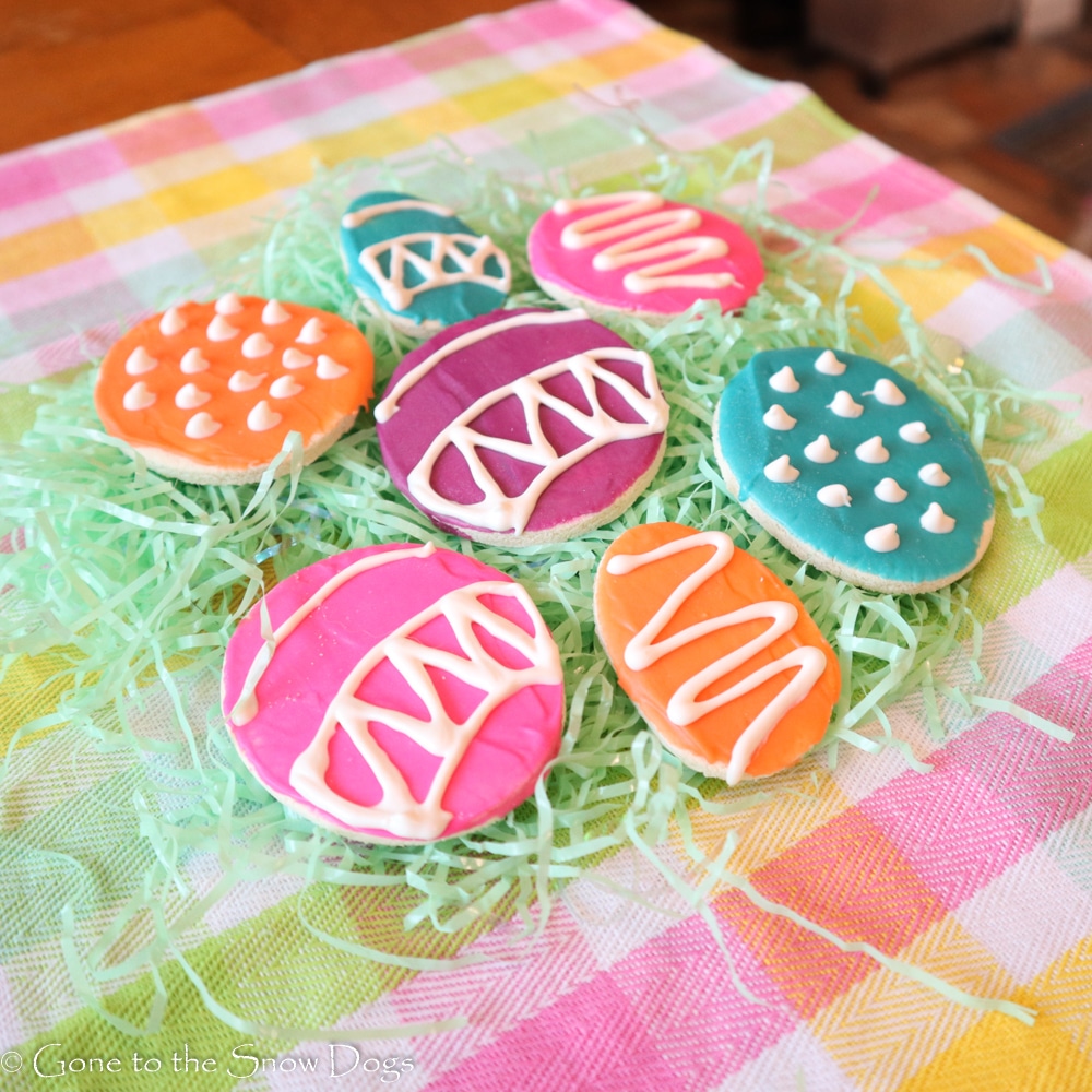 Roll the dough out to your desired thickness. I did 1/6 inch this time. Go ahead and cut out your Easter Egg shapes. Place on your baking sheet, and bake for 10 – 15 minutes. If you want them really crunchy, turn you oven off and leave them in for another hour.