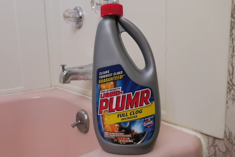 Now that she has come clean, it’s time to use the Liquid-Plumr Full Clog Destroyer! Be sure that your pets are completely out of the tub and away from this product before using it. We removed Memphis from the bathroom and blocked the door so no one could sneak back in.